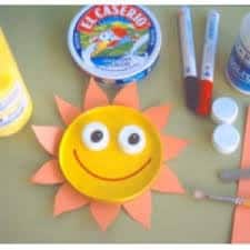 Ahora vamos a preparar a nuestro amigo sol 🌞, muy feliz, con una gran sonrisa 🙂. Os damos varias ideas: podéis hacerlo con un plato de cartón, una caja de quesitos, recortando la silueta de la mano en cartulina o estampando las manos 🤚con pintura, y siempre con una sonrisa 🙂🙂.
