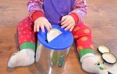 🧴 Bote con gomas: deberán ir poniendo ellos las gomas. Os recomendamos gomas de tela como las del pelo, ya que son más seguras para ellos. Recordad siempre supervisarles, para evitar que se lo metan en la boca.