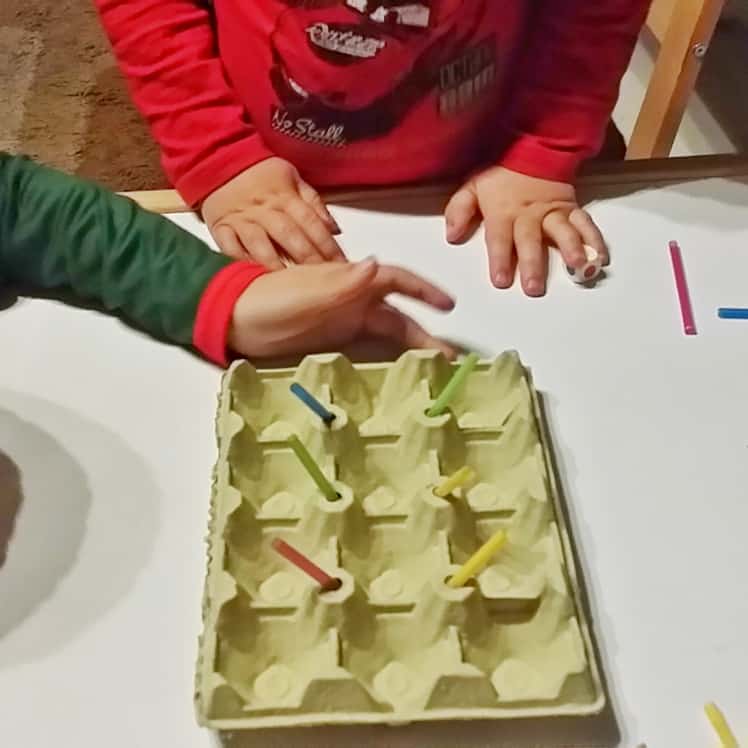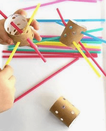 🧻 Rollos de papel higiénico y pajitas: hacemos agujeros paralelos en los rollos de papel higiénico 🧻, y deberán meter las pajitas de un lado a otro. También lo podemos hacer con cajas que tengamos en casa como la de zapatos 👠, o incluso con las hueveras. Podemos también añadirles los colores, y así tendrán que meter cada una en su color.