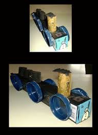 Para empezar vamos a hacer la locomotora. Para ello, vamos a utilizar un rollo de papel higiénico 🧻, dos bases del tetrabrik 🧴🧴, y 2 tapones. Vamos a poner boca abajo una de las partes del tetrabriks y encima tumbado el rollo de papel. De manera contigua ponemos la otra parte del tetrabrik, de manera vertical, que será la cabina. Añadimos las ruedas pegadas a la base de la locomotora. Y por último utilizaremos el alambre para unirla a los vagones.