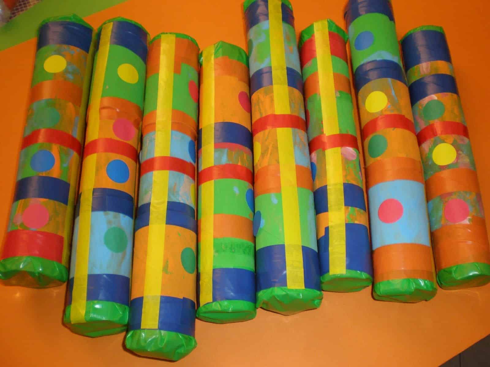 - Palos de lluvia 🌧️: vamos necesitar para realizarlo rollos de papel de cocina (si no tenemos, podemos juntar dos o tres rollos de papel higiénico 🧻). Cuando más largo sea el palo mejor. Introducimos arroz y algunos trozos de papel arrugado. La idea es que el arroz no caiga de golpe, sino que al tropezar con el papel vaya cayendo poco. Luego vamos a precintar bien los dos extremos. Y preparados para disfrutar de los sonidos 🔊🔊.